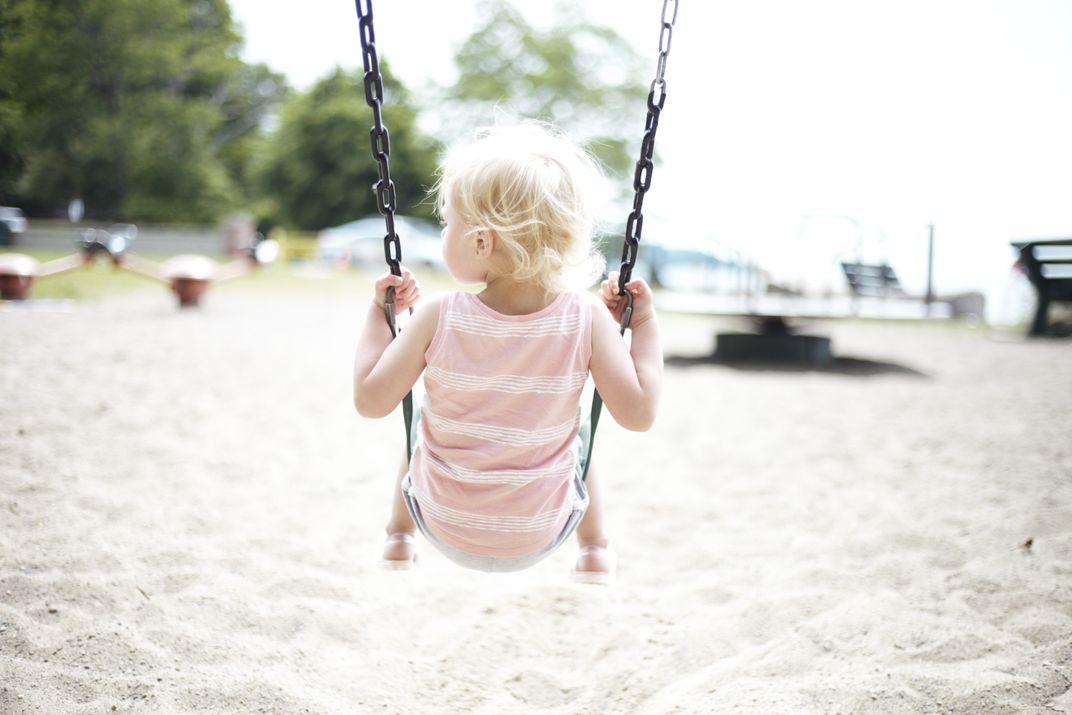 The American experience is most present to us as children. The often carefree and joyous simplicity of our youth defines our adulthood. From the adventures we have, the skills we learn, and the time spent with our friends and family. This picture captures a young girl enjoying one of the most memorable parts of our young lives, having fun on the playground.