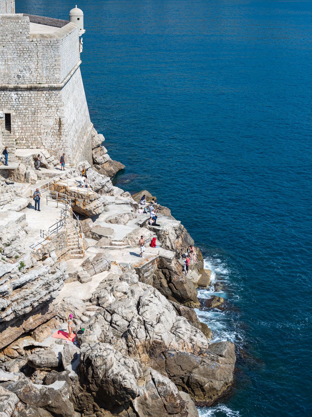 Along the coast of Dubrovnik, there is a variety of beautiful, albeit mostly pebbly, beaches. Still, people enjoy hanging around within the Old Town and the closest access to the water is via the cliffs on which the fortress walls sit.