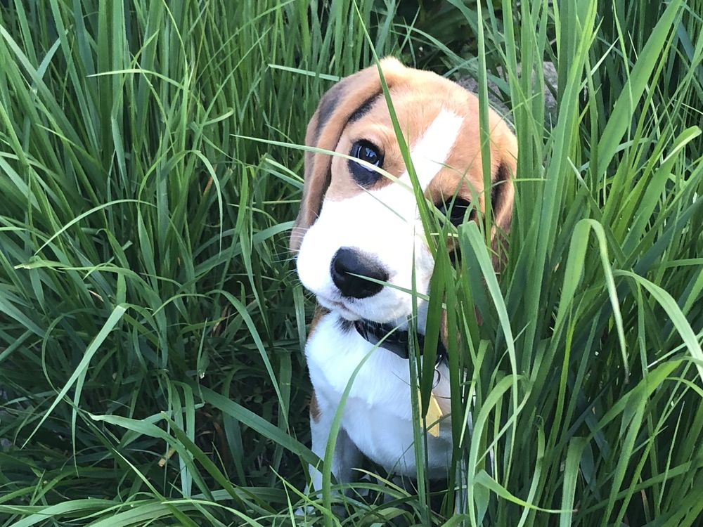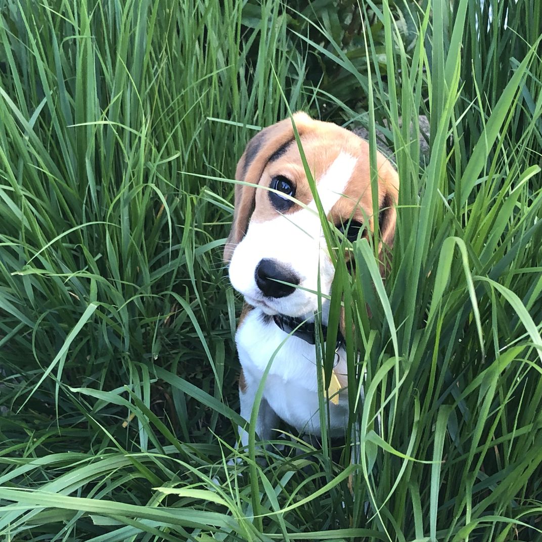 favorite place. Hazel is new to the home and seems to be very content in the tall grass in the yard