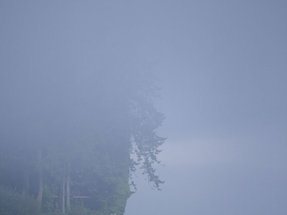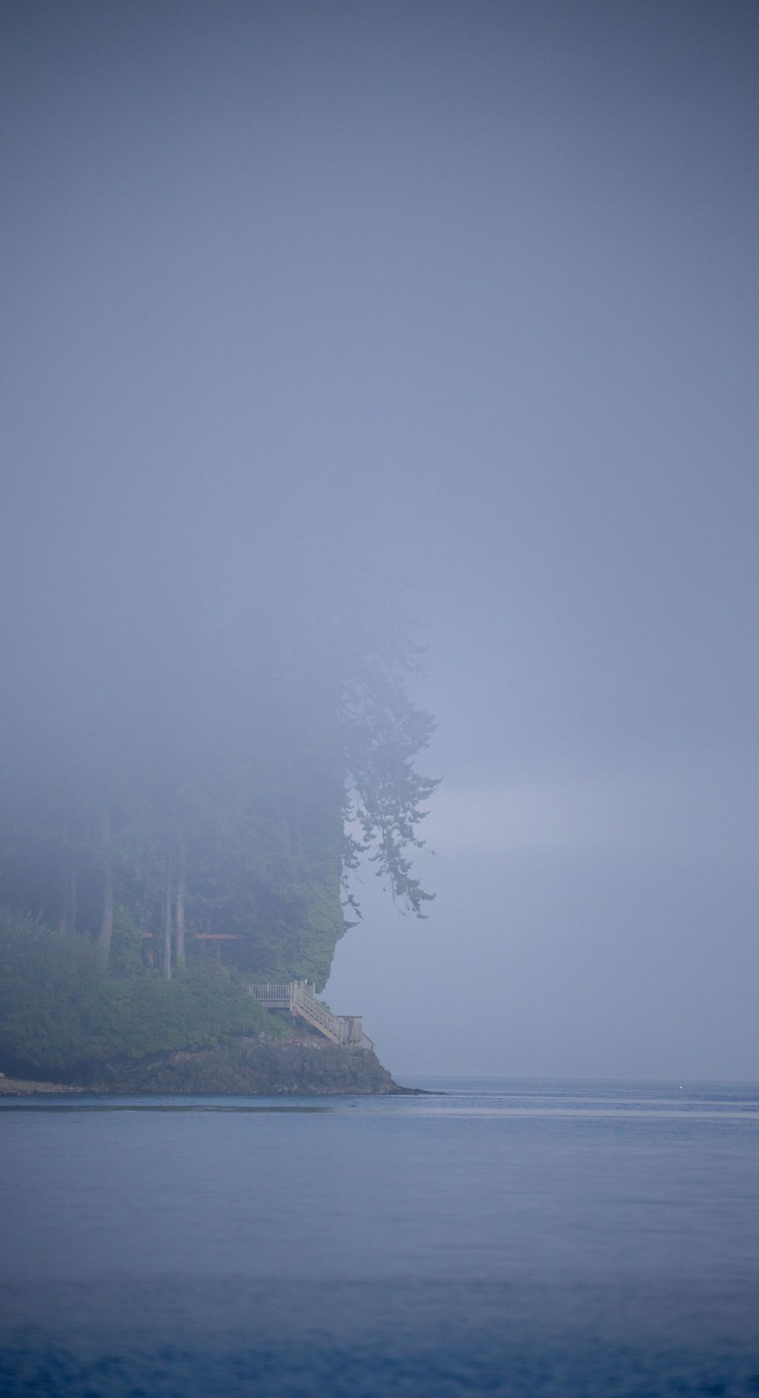 An illusion of fog covering a cliffside makes it appear as if a beanstalk goes up endlessly into the heavens. The steps at the bottom lead into the imaginary beanstalk.