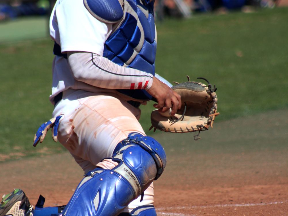My college team Pratt Beaver was playing against Barton. I took picture of the catcher returning the ball back to the pitcher