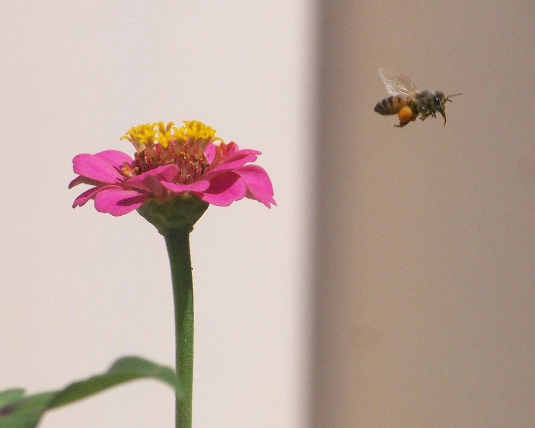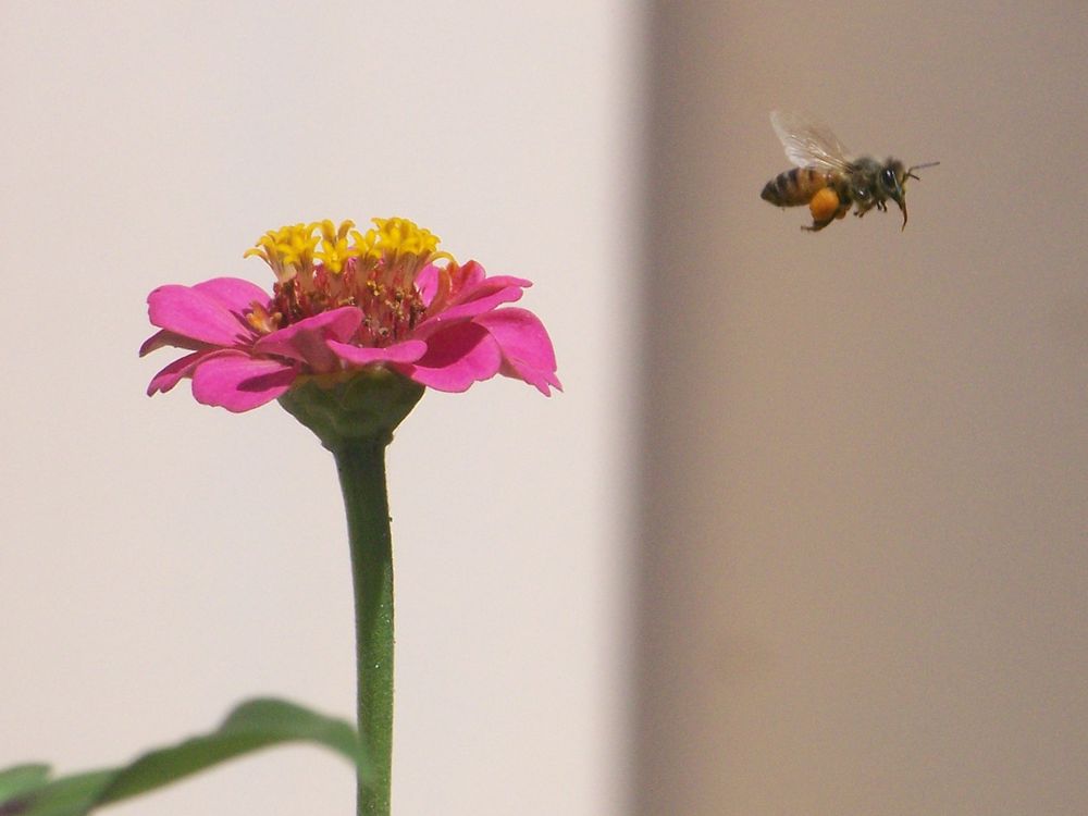 Bee leaving flower
