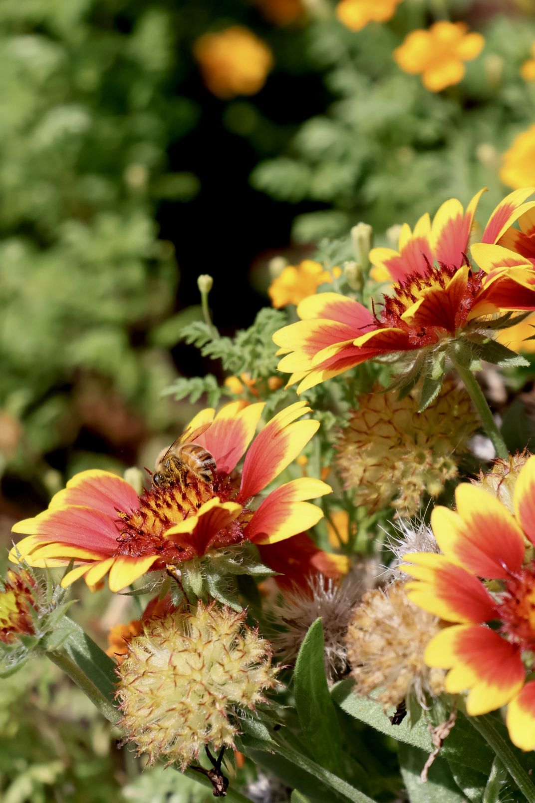 Captured a bee during his meal. He choose a red/yellow colored flower. Wait... I see red and yellow but what does the bee see? I wish I could ask him!