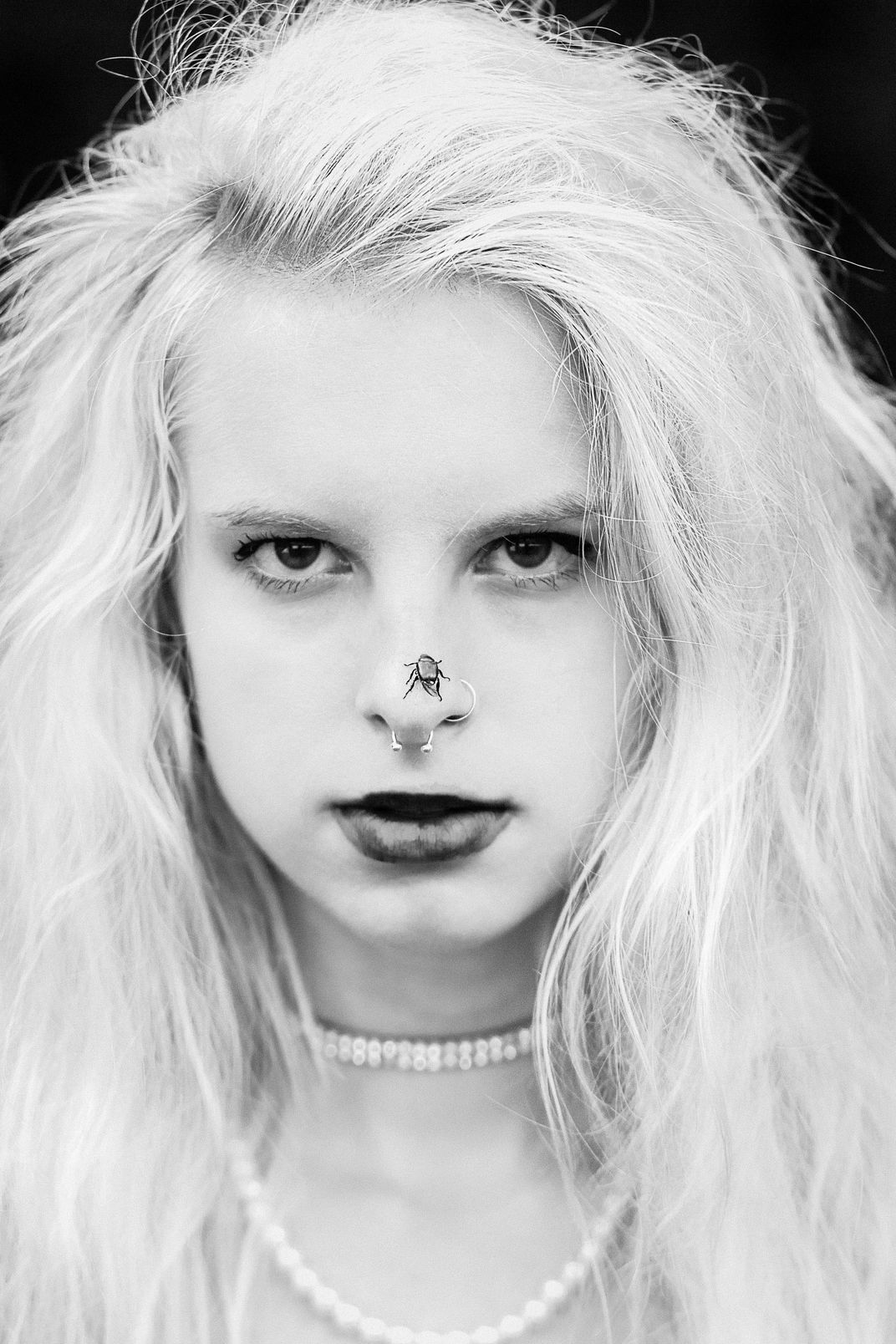 I used a Black and White filter on this photo to create a greater contrast between the girl's hair and the beetle on her nose.