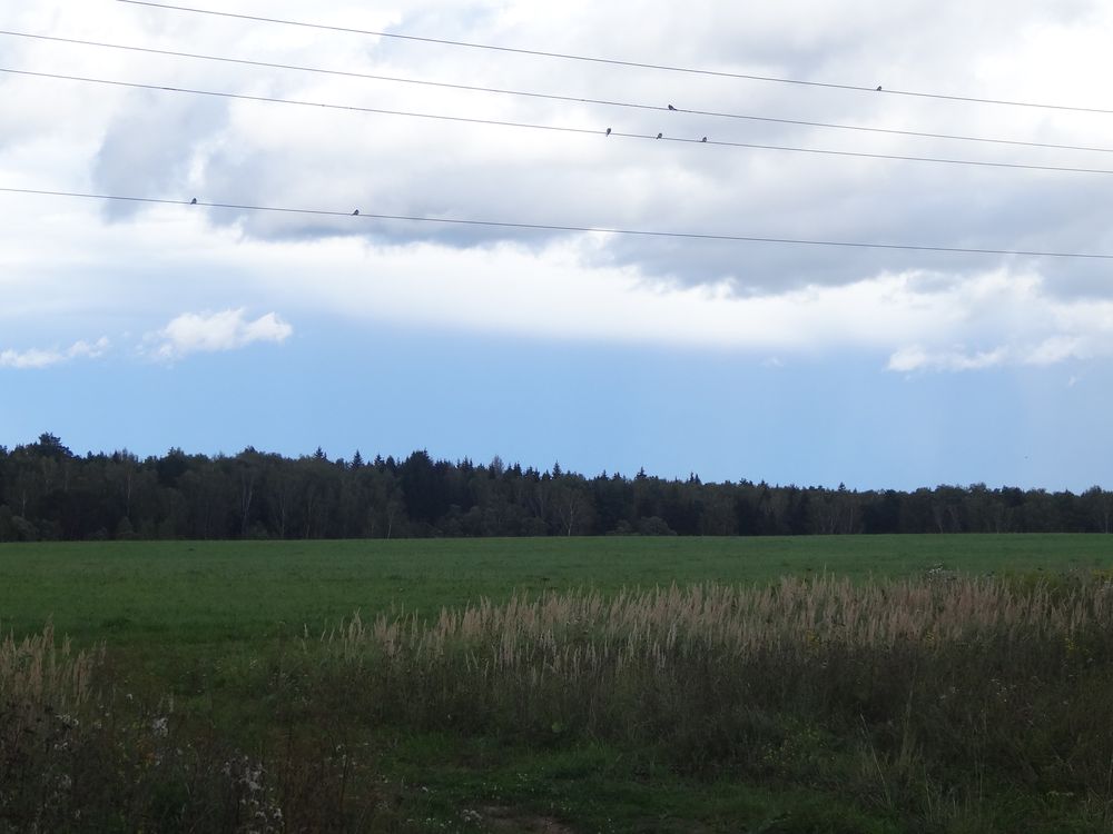 The storm doesn't just approach—it rises on the horizon. The last sun gilds the fields of the Moscow region, while from behind the forest, a heavy, slate-gray wall of rain advances silently. A moment of perfect, electric calm.