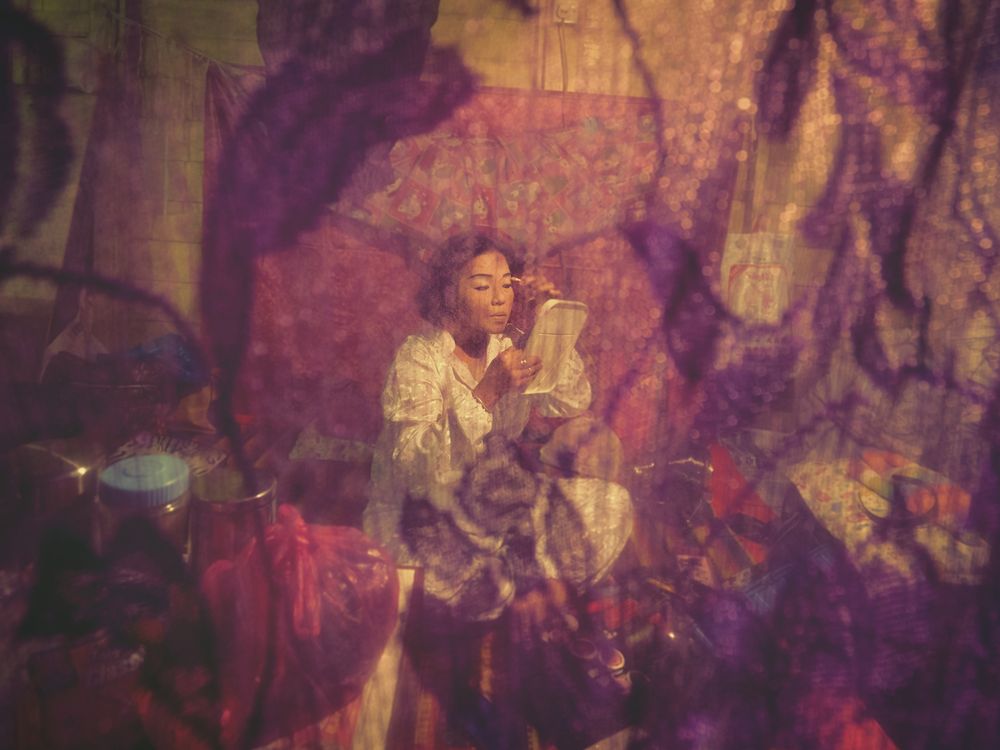 A Chinese Opera artist making herself up before her performances during the Chinese 7th Lunar Month, when the souls of the deceased are released from the Gates of Hell, according to Chinese custom.