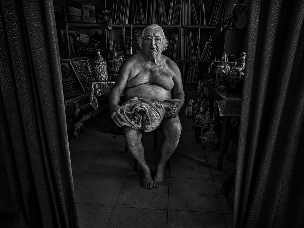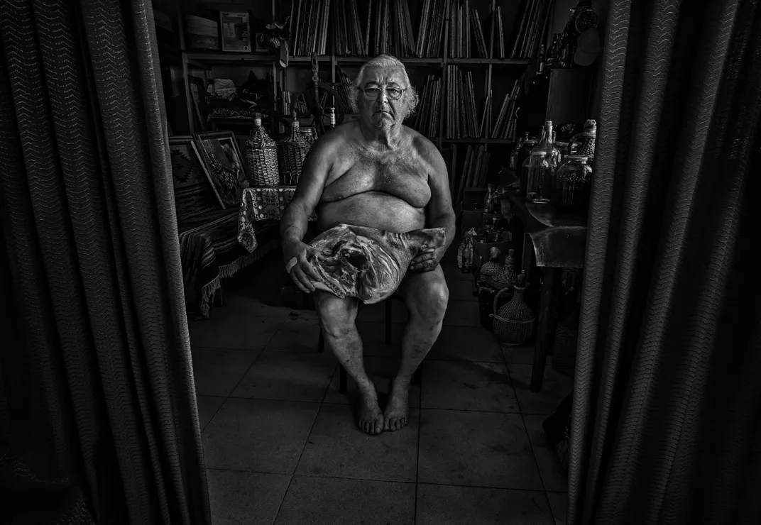 "There are no roles on this stage. Between the curtains and the canvas — the doom of being oneself. Every fold on the body is a brushstroke of lived years, every object around — a fragment of a still life of memory. In this somber theater of everyday life, he is both the spectator and the author, and the whole drama comes down to one thing: to remain genuine, even when no one is watching anymore."
