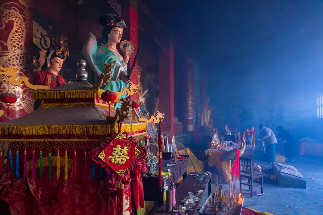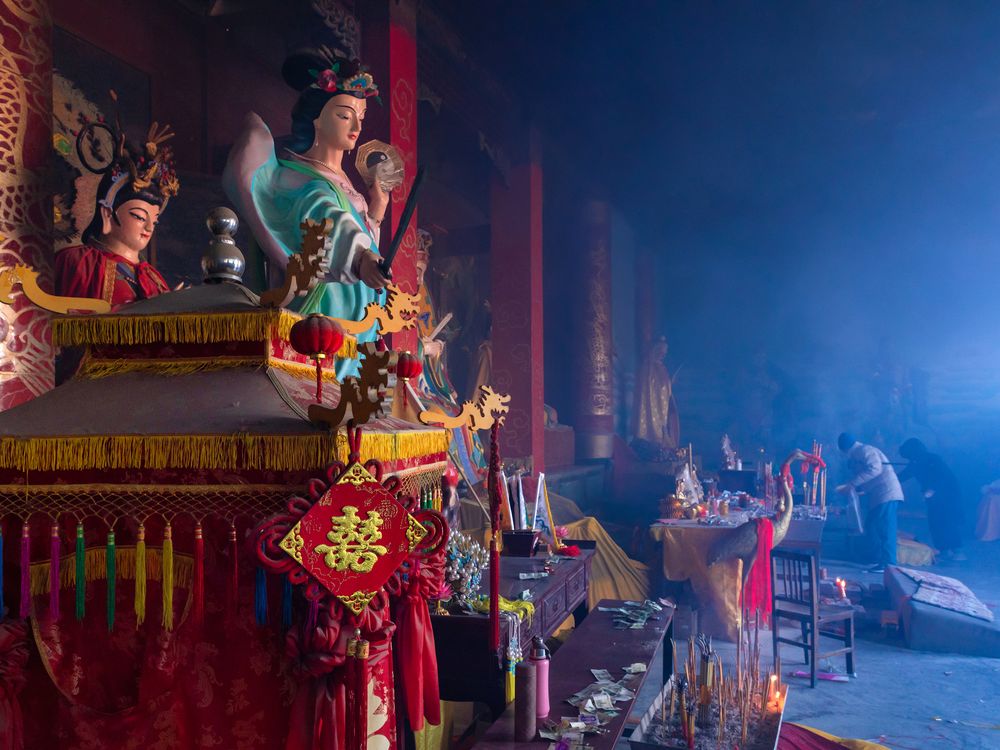 During the Spring Festival, people in northern China go to temples to burn incense and pray for blessings.