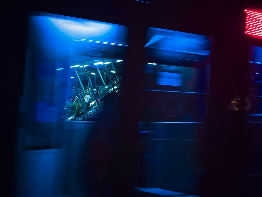 When I was strolling on the streets of Bangkok and a bus was speeding by, I had the impulse to take a picture of it. Unexpectedly, I used the slow door mode and happened to capture the person walking up the stairs across from me.