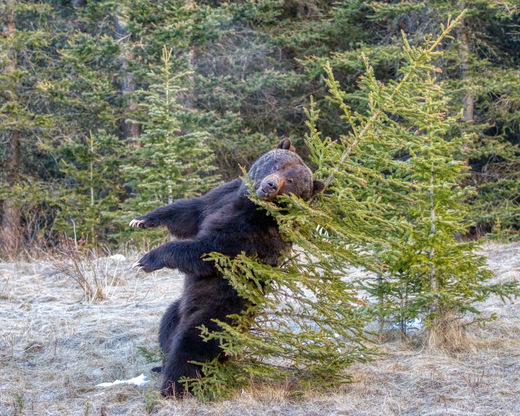 This big grizzly bear was keeping a female grizzly bear close. He would not let her out of his sight...it was sporing time and mating season! The big Grizz would huff and puff and mark trees in the area ensuring other male grizzlies stay away from his territory!