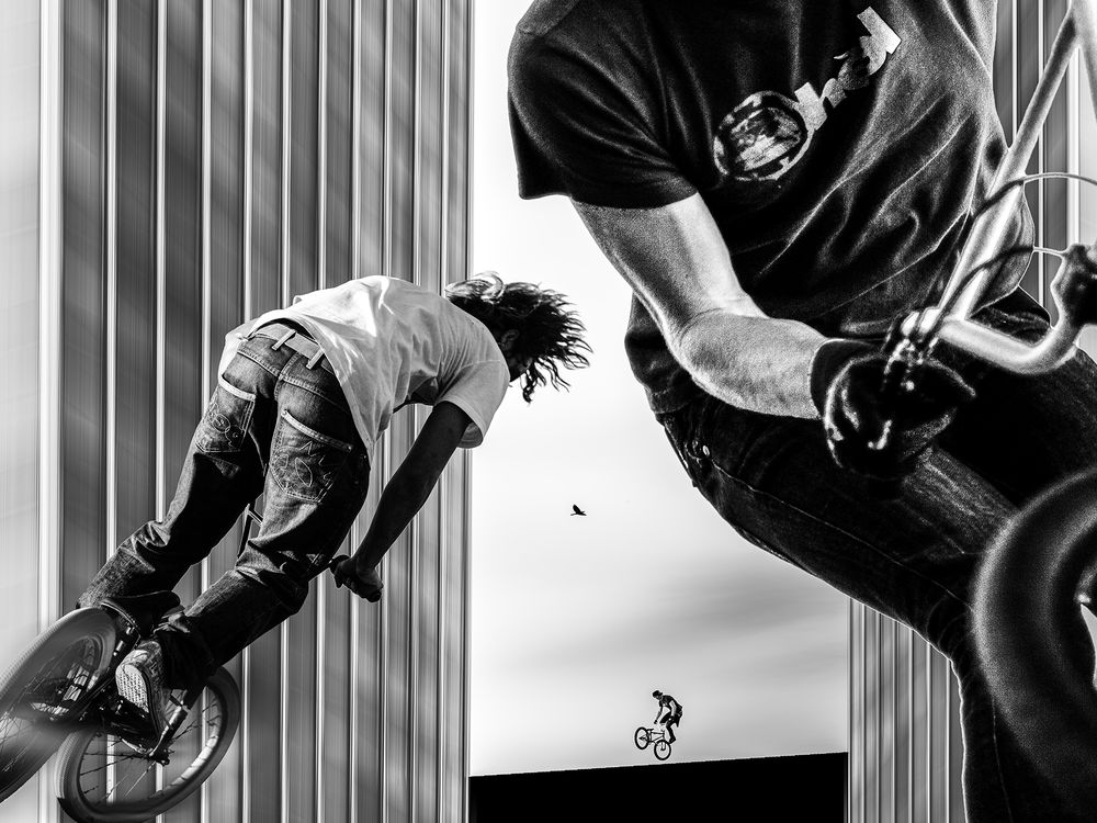 Bikers Author: Jozef Danyi (Slovakia / Czech Republic) Year: 2024 Category: Black & White Concept: The series Bikers captures the raw tension between movement and stillness within the urban landscape. Set against the backdrop of brutalist architecture, the riders emerge as modern silhouettes, symbols of freedom, individuality, and resistance. Their presence transforms the concrete environment into a stage of rhythm and contrast, where light defines the line between man, machine, and the geometry of the city. Artistic Intent: Through Bikers, Jozef Danyi explores the visual dialogue between strength and solitude, control and speed. The stark monochrome aesthetic emphasizes form over color, emotion over detail. The riders become timeless figures moving through a silent choreography — embodying both rebellion and harmony with the space around them. Artist’s Note: “Every rider carries a fragment of the city’s rhythm. Through light and shadow, I seek the pulse of freedom that connects man and machine — a quiet rebellion on the edge of motion.”