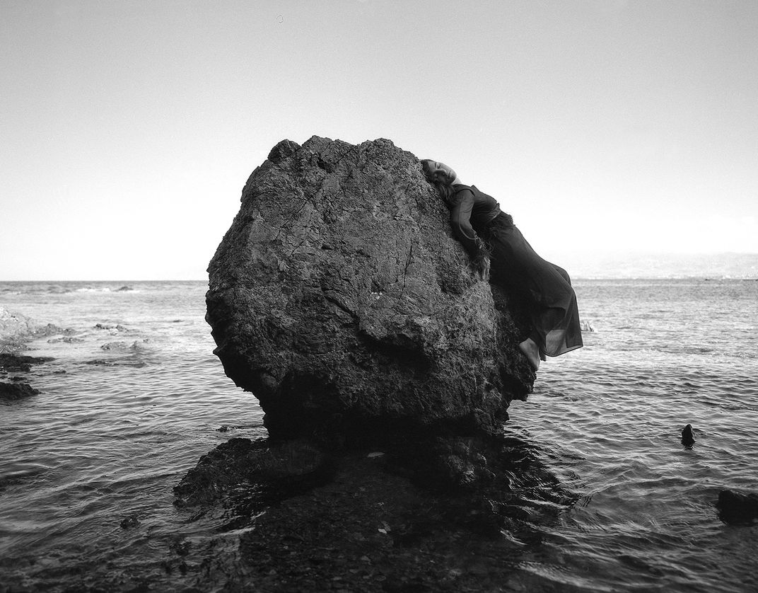 Using film photography with no digital manipulation I pose women in the landscape. By using mirrors, reflections, and forced perspective, I create an illusion in front of the lens. Although they misleadingly appear docile, it is obvious they possess a mysterious power to move the landscape at will. They change shape and scale, picking up parts of the landscape or completely transforming it.