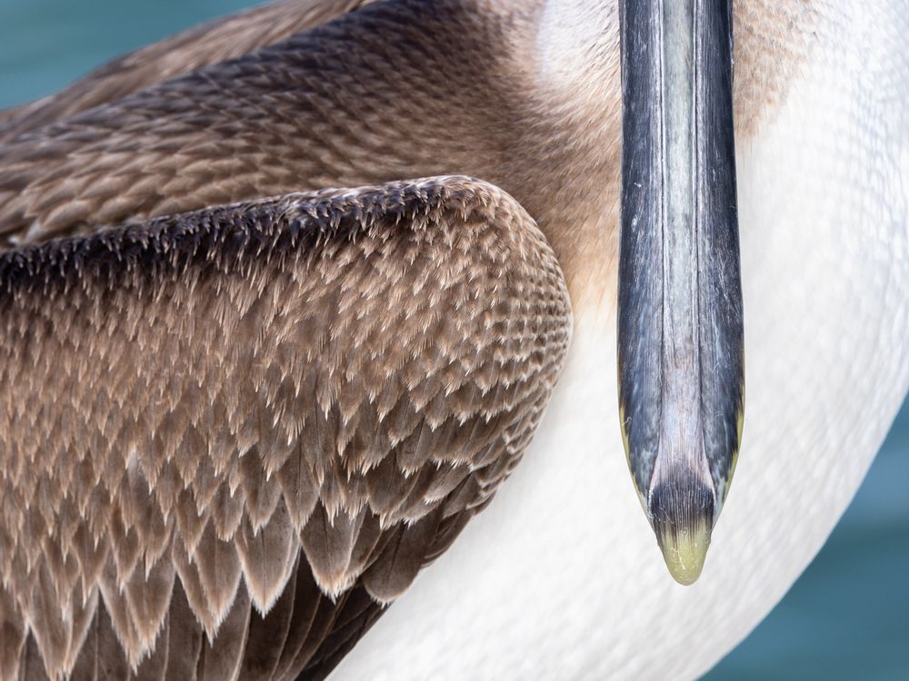 Of all the pelican species, the brown pelican has a remarkable hunting strategy: they dive from the air into the water. A young brown pelican, however, takes a more relaxed approach and waits—much to my delight—on a post on a bridge for a fisherman to leave him his unwanted bycatch. This allowed the pelican to let me gradually approach. This gave me the opportunity to calmly capture details of its plumage and distinctive beak.