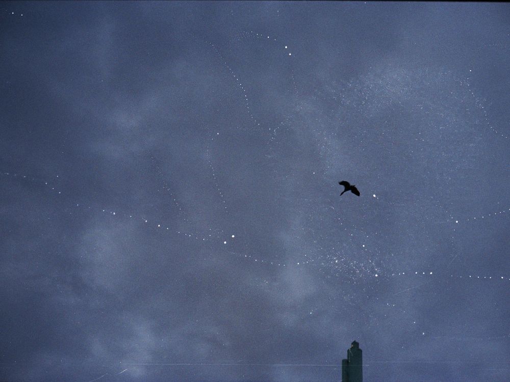 Picture of a bird taken during blue hour at the levee in Baton Rouge, on a Yashica Electro 35GTN.