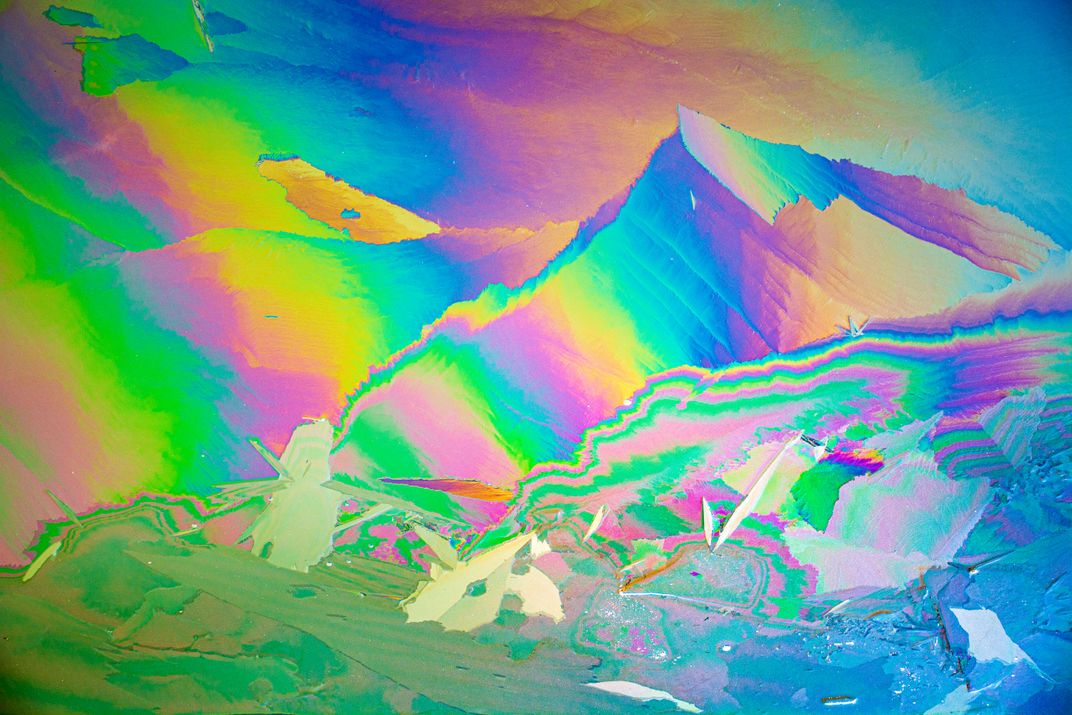 On a winter walk around our neighborhood lake, I was amazed to see a rainbow of colors when looking down into in the thin lake ice. But the colors disappeared when I took off my sunglasses. Turns out my polarized sunglasses were allowing me to see an optical phenomenon called birefringence.