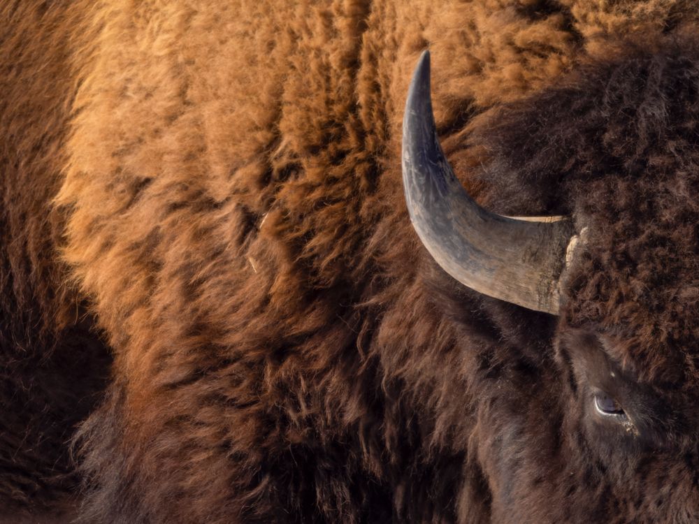 Bison Horn - My goal here was to fill the space with the Wool of the Bison so you could see the difference in the light and dark of the coat in the light. I also wanted to keep enough of the Bison, that it's recognizable. Keeping with a Western Theme.