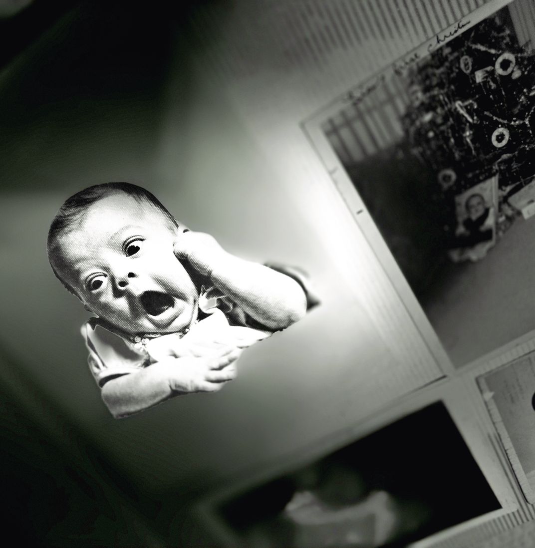My mother at 2 months old. Her expression brings her shooting off the album page.
