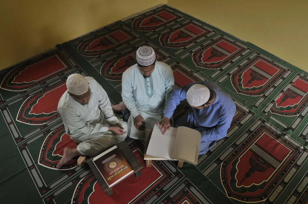 The blind students are taking elementary education in the residential school of Hazrat Abdullah Ibn Maktum (R) for teaching the Holy Quran in Braille system of Germany. Ronkely,Golapgonj,Sylhet, Bangladesh.