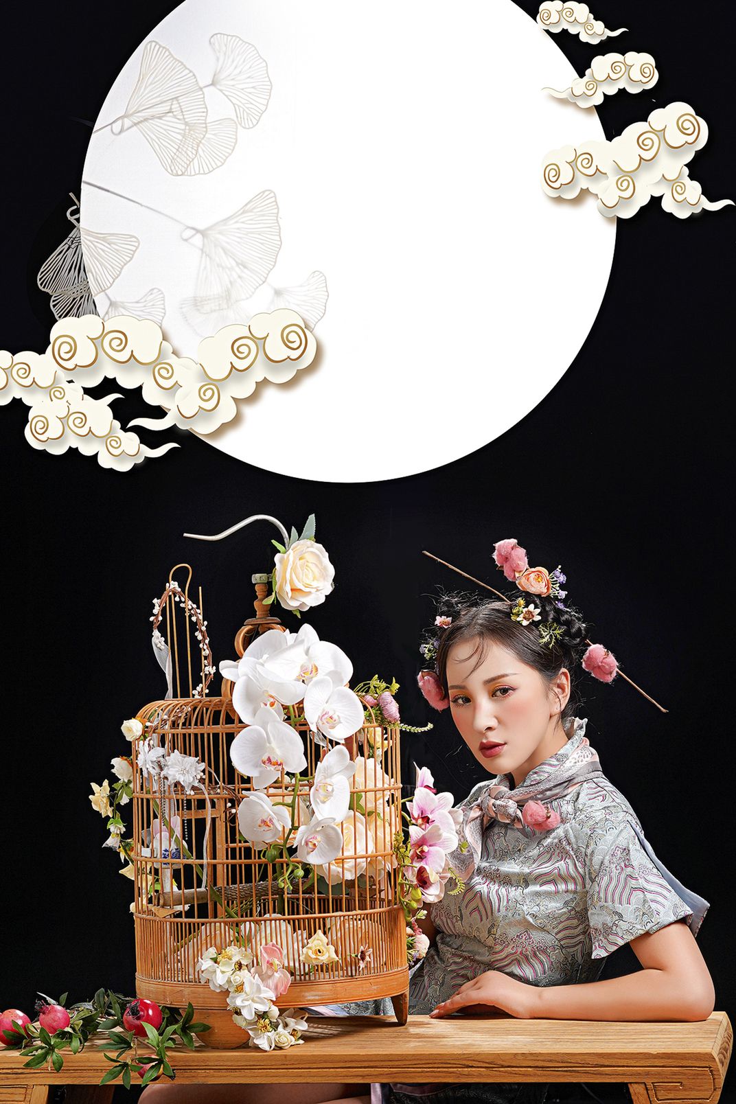 Blooming flowers and full moon