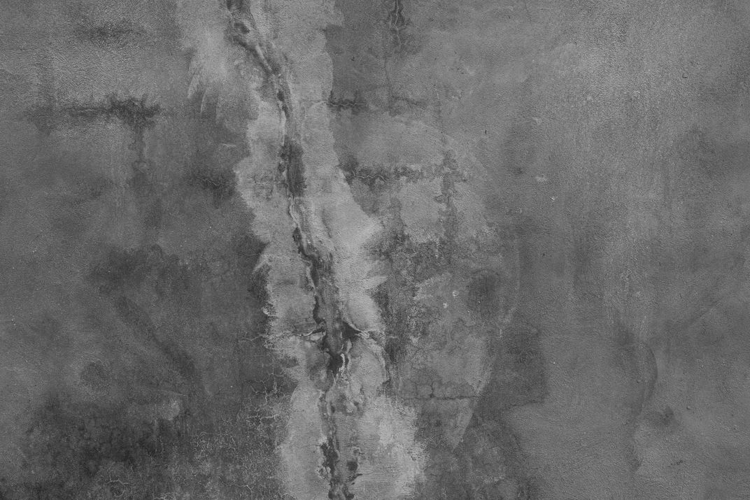 A concrete wall whose miscolorations had a painterly quality to them.