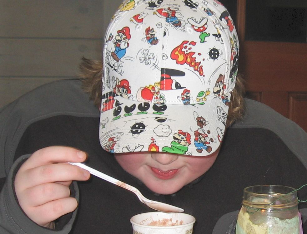 Blow on it! Enjoying a cup of hot cocoa after a Winter Lantern Walk.