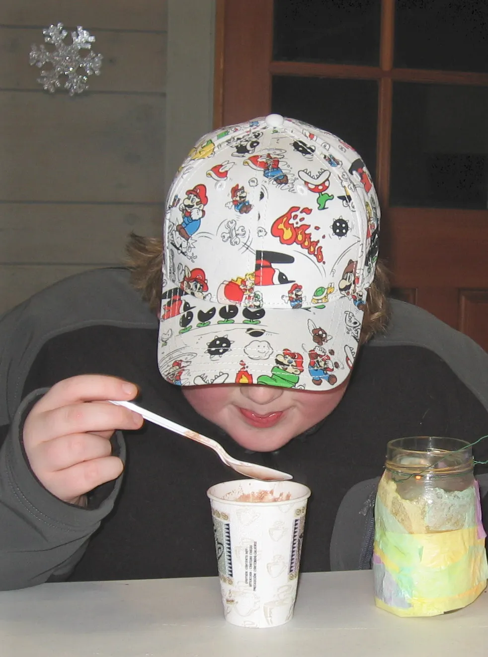 Enjoying a cup of hot cocoa after a Winter Lantern Walk.