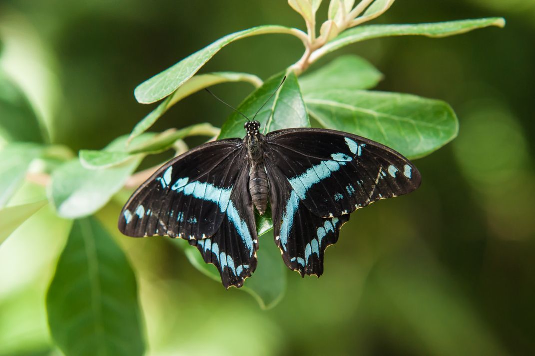 This image of a Blue Banded Swallowtail butterfly was taken in a free fly enclosure.