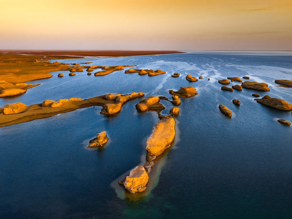 As the wind sweeps across the water, ripples scatter the light, turning the desolate Gobi stretch into a gentle, watery canvas. Every stone, every ripple carries the calm and warmth of the wilderness.