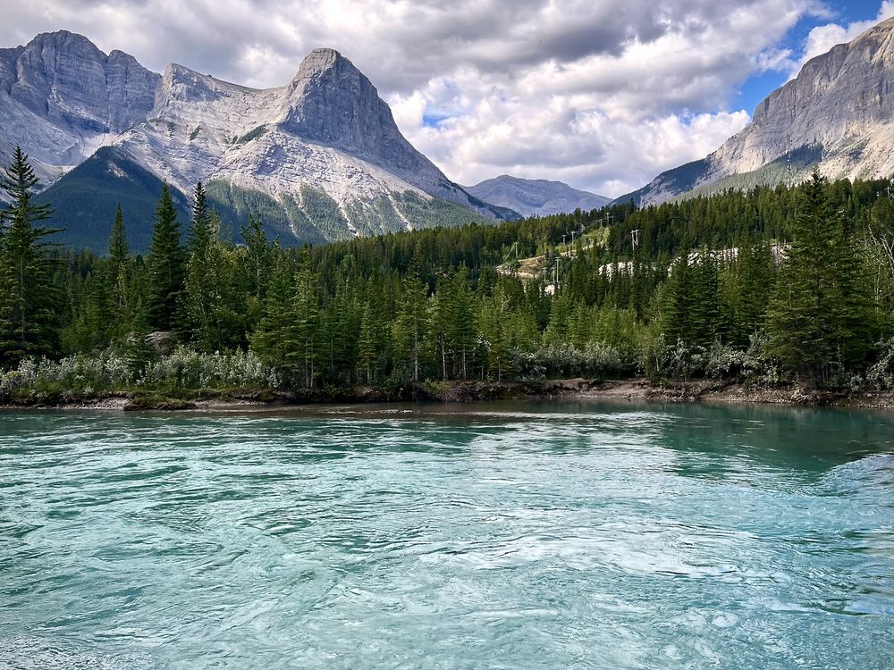 This picture shows the Bow River, and Mountains surrounding it, in Alberta.