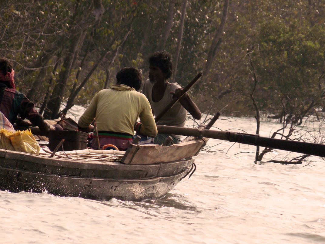 mangrove forest at Sundarban (largest island) where fisherman at sailing a boat.