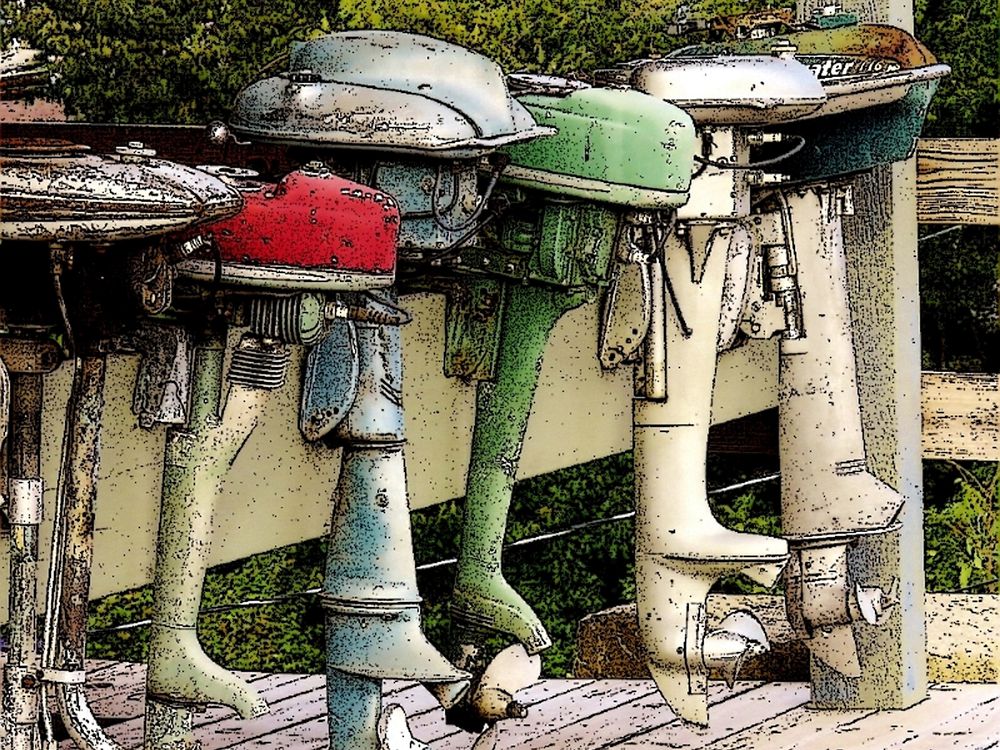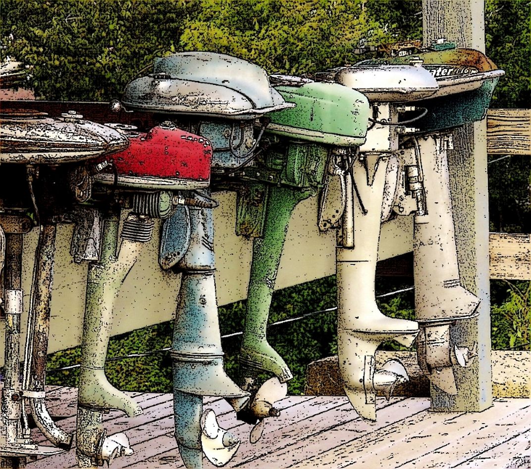 These motors are located outside a local "Iguana" boat dealership on Bagnell Dam Strip at Lake of the Ozarks.