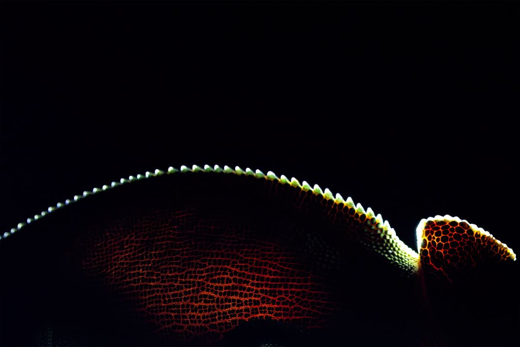 I captured this Indian Chameleon (Chamaeleo zeylanicus) in a way that reveals the incredible biological architecture hidden beneath its skin. I achieved this by strategically placing an LED light source directly behind the chameleon. This intense backlighting transforms the typically opaque animal into a translucent, living sculpture. The light passes through its delicate skin and tissues, dramatically illuminating the intricate network of blood vessels, which appear as bright, glowing patterns of life, almost like a branching, ruby-red river system. The rest of the chameleon's silhouette and form are strongly defined against the background. I feel this lighting technique creates an utterly out-of-this-world effect, turning a simple portrait into a complex biological study where the internal workings of the chameleon are momentarily exposed as a beautiful, glowing map.
