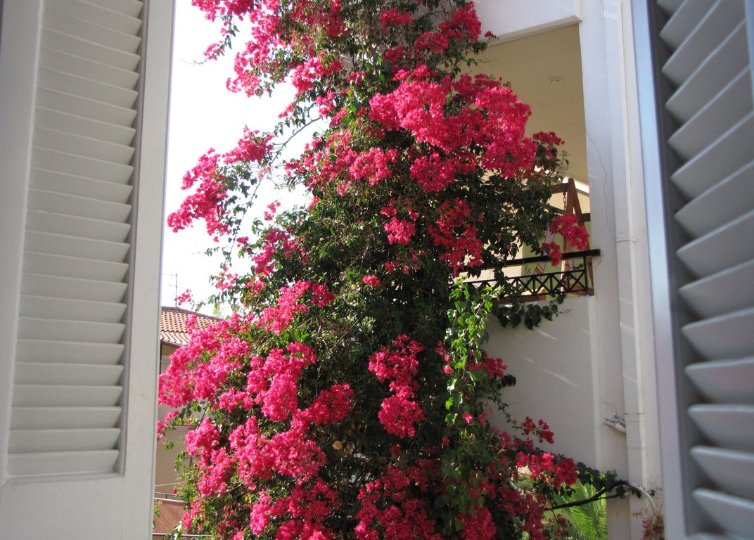 Room with a View: the neighbor's bougainvillea from my kitchen window in Athens, Greece