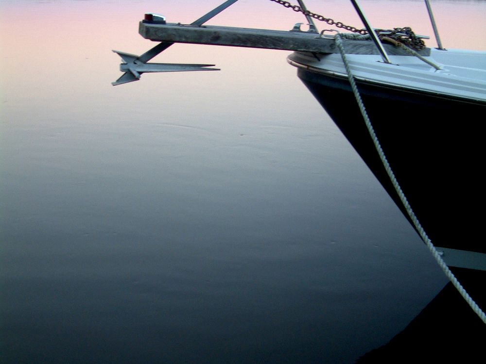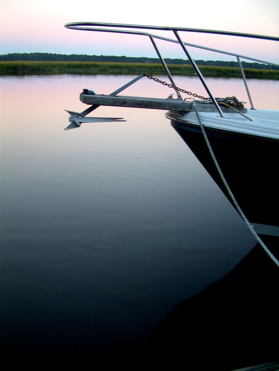 Bow of boat at dusk.