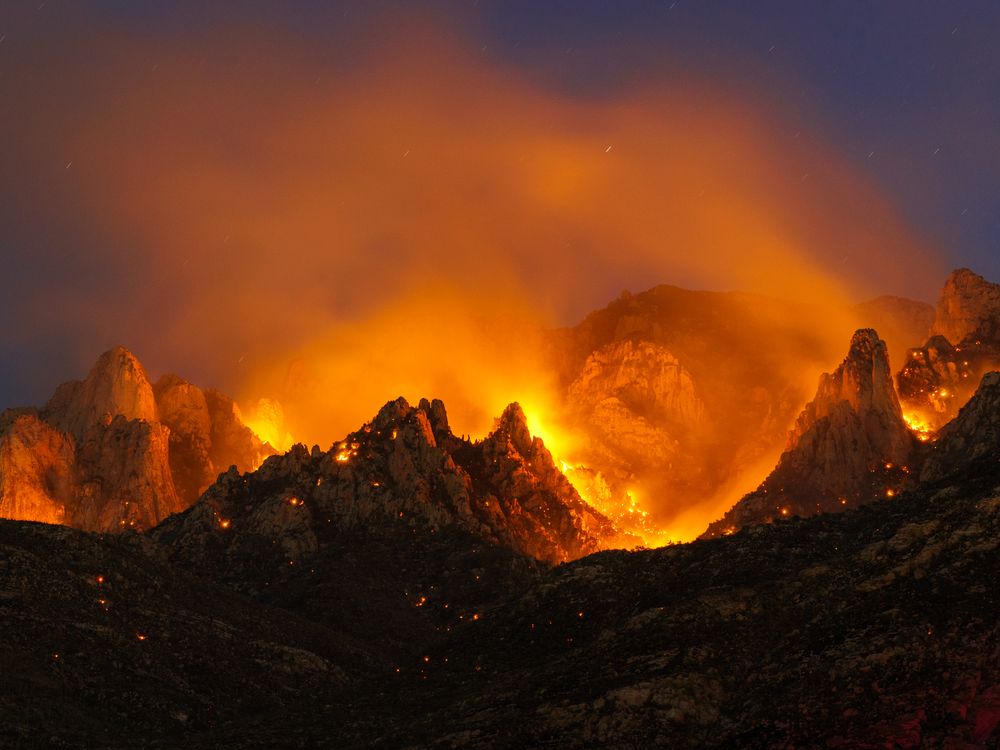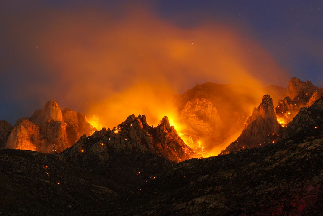Captured on June 7, 2020 at 8:24 pm. The Bighorn Fire ravages Pusch Ridge in Catalina State Park just outside of Tucson Arizona. This fire would continue to rage for the rest of the month and much of the next month, finally reaching 100% containment on July 23. This fire started on June 2 and burned just shy of 120,000 acres.