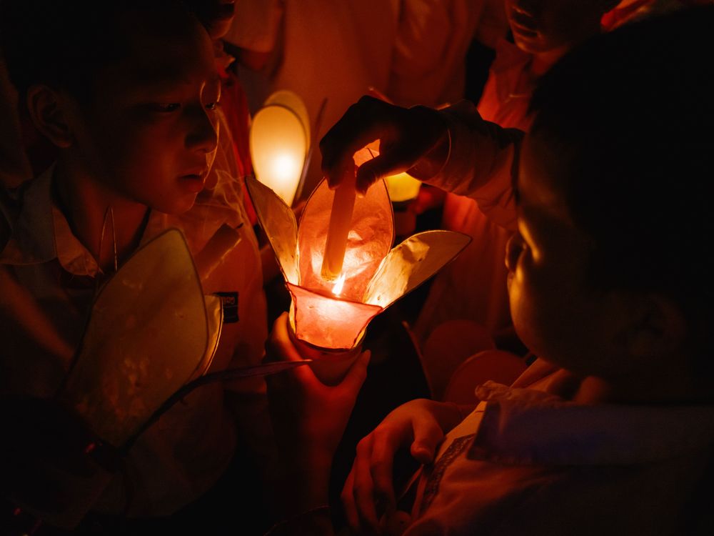 While travelling to Laos, we unknowingly arrived in Luang Prabang during the annual festival of the boats of light. A beautiful time to visit the city. In the photo, various boys group around one candle with the intention to relight their own.
