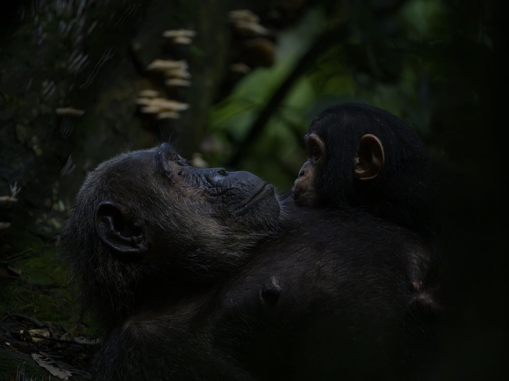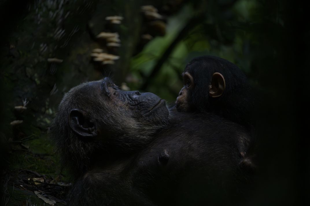 I have visited Kibale National Park on several occasions. Often I watched and photographed chimpanzee families dynamics. Last year, while we were leaving a troup behind, we spotted a mother with her baby resting on a branch. Image taken from distance with a telephoto lens not to disturb the interaction that was unfolding before my eyes. Relaxed, undisturbed, we left them behind with a great "wow". I had never experienced that before.