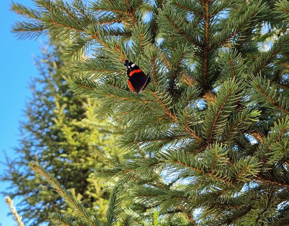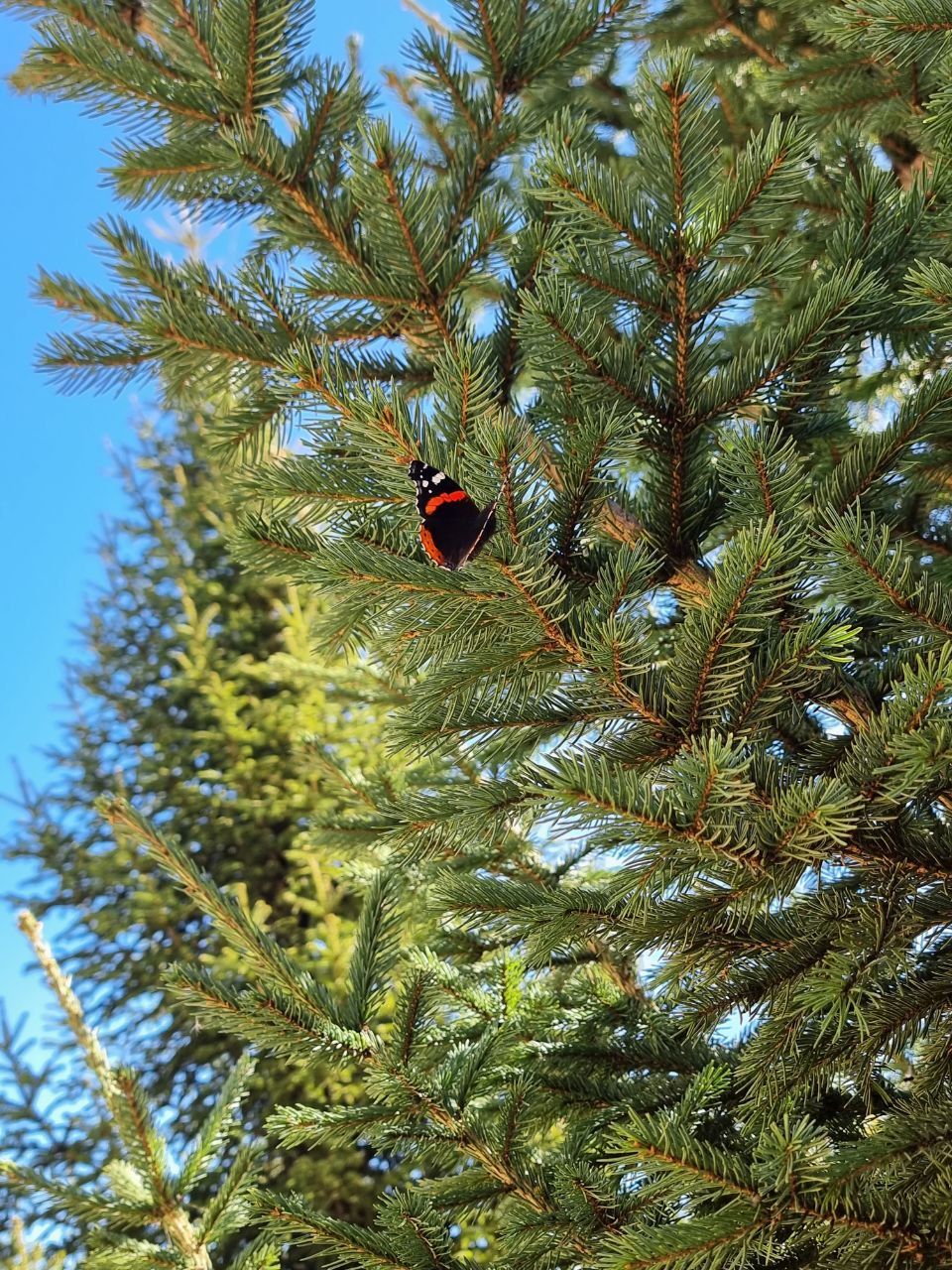 Usually the beginning of October in our city is cold and snowing, but this year it was warm, and a butterfly, as a symbol of Summer, sat on the Christmas tree as a symbol of Winter