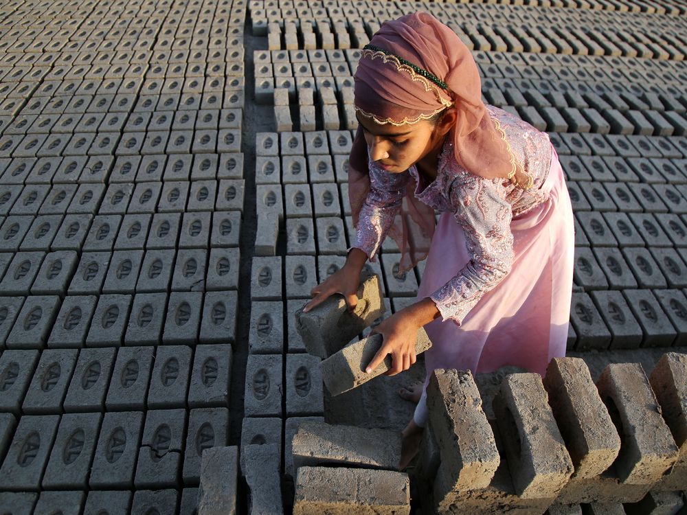 Girl works at a brick factory in Kunduz, Afghanistan.