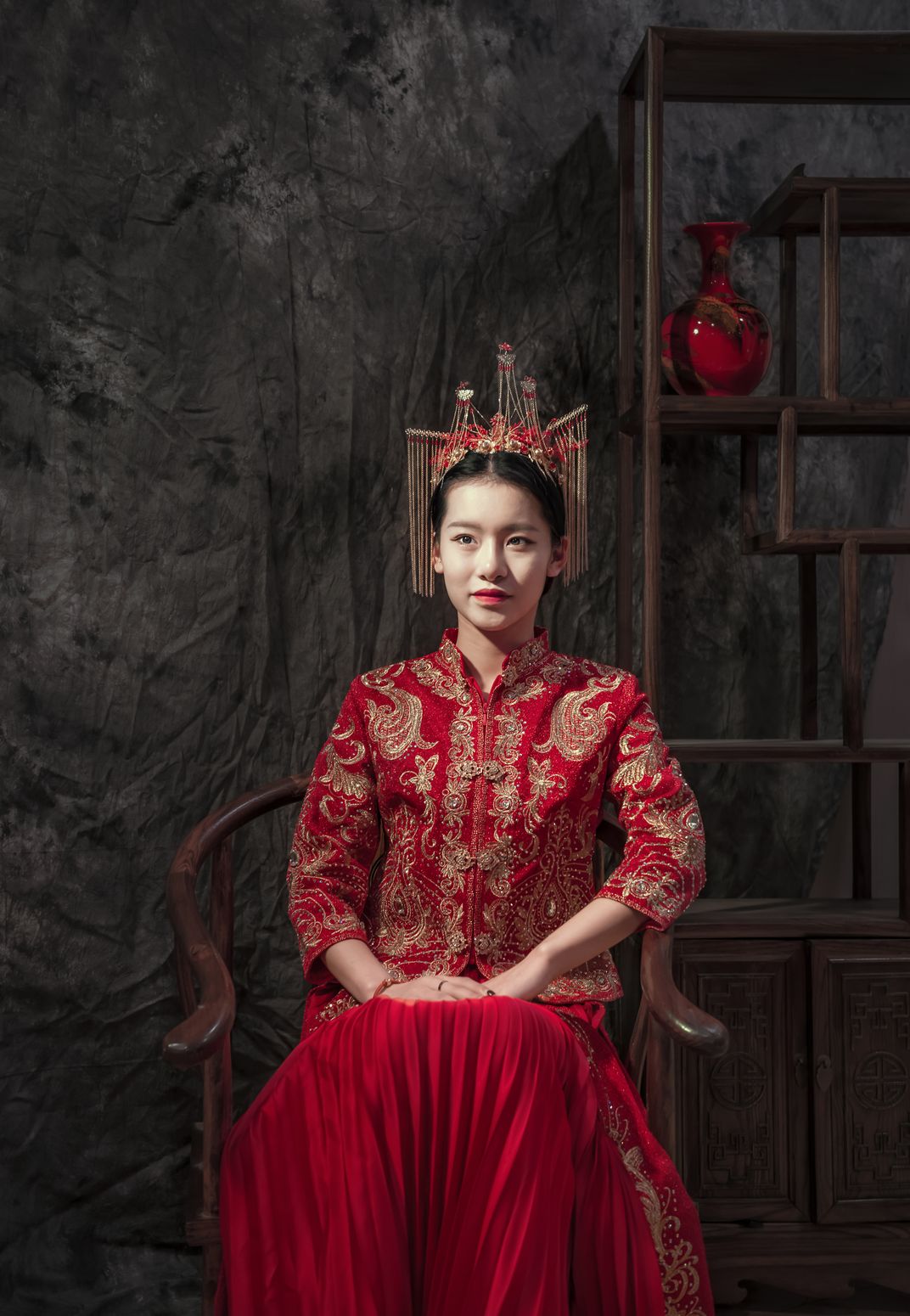 A Chinese is waiting to be fetched into husband’s family.