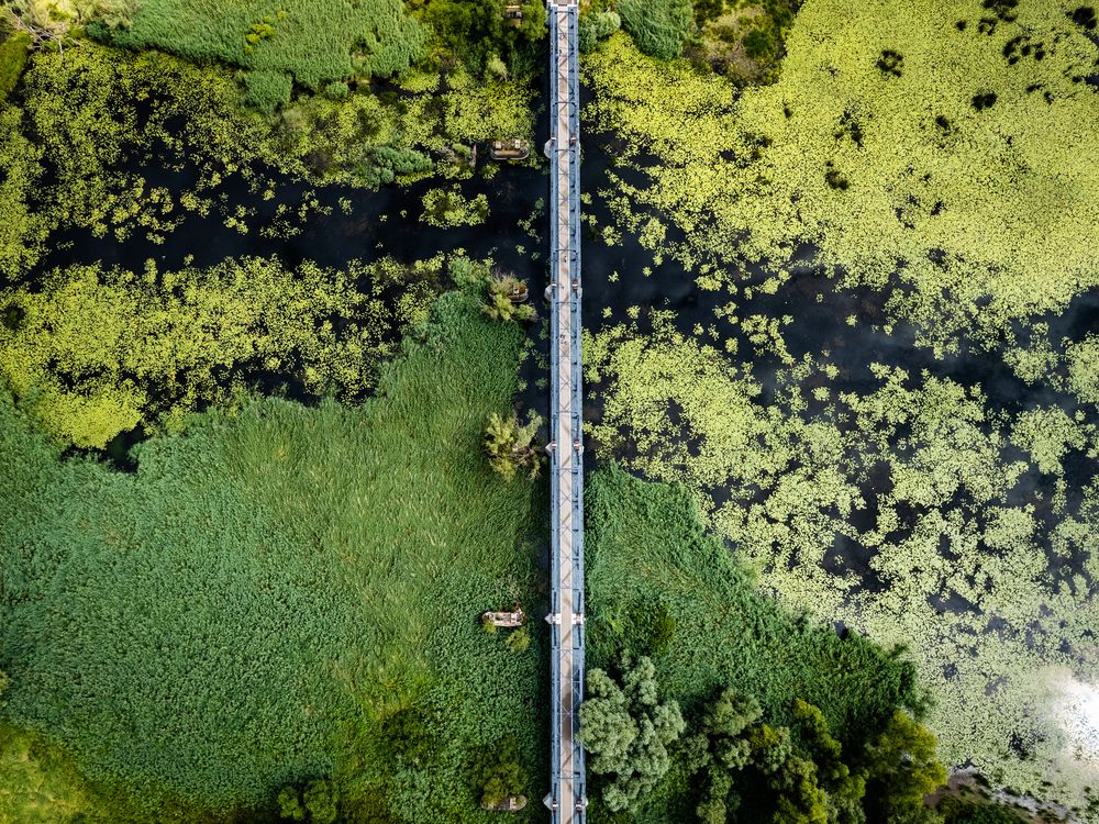 Oder river faced biggest ecological catastrophe this year, when millions of fish died because of the pollution, being nothing new in the river, but this year, due to drought, it was too concentrated for fish to survive. Photo was taken days before this event. On the picture you see a former railway (now pedestrian) bridge linking Poland and Germany, seen from the polish side. Ecosystem seems to be blooming.