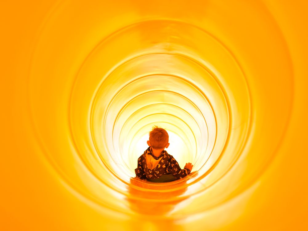 My little nephew going down a slide at a Dutch beach during a family vacation. I find this shot very symbolic of how he slides towards his future, unencumbered by age, responsibilities and all that many worries.