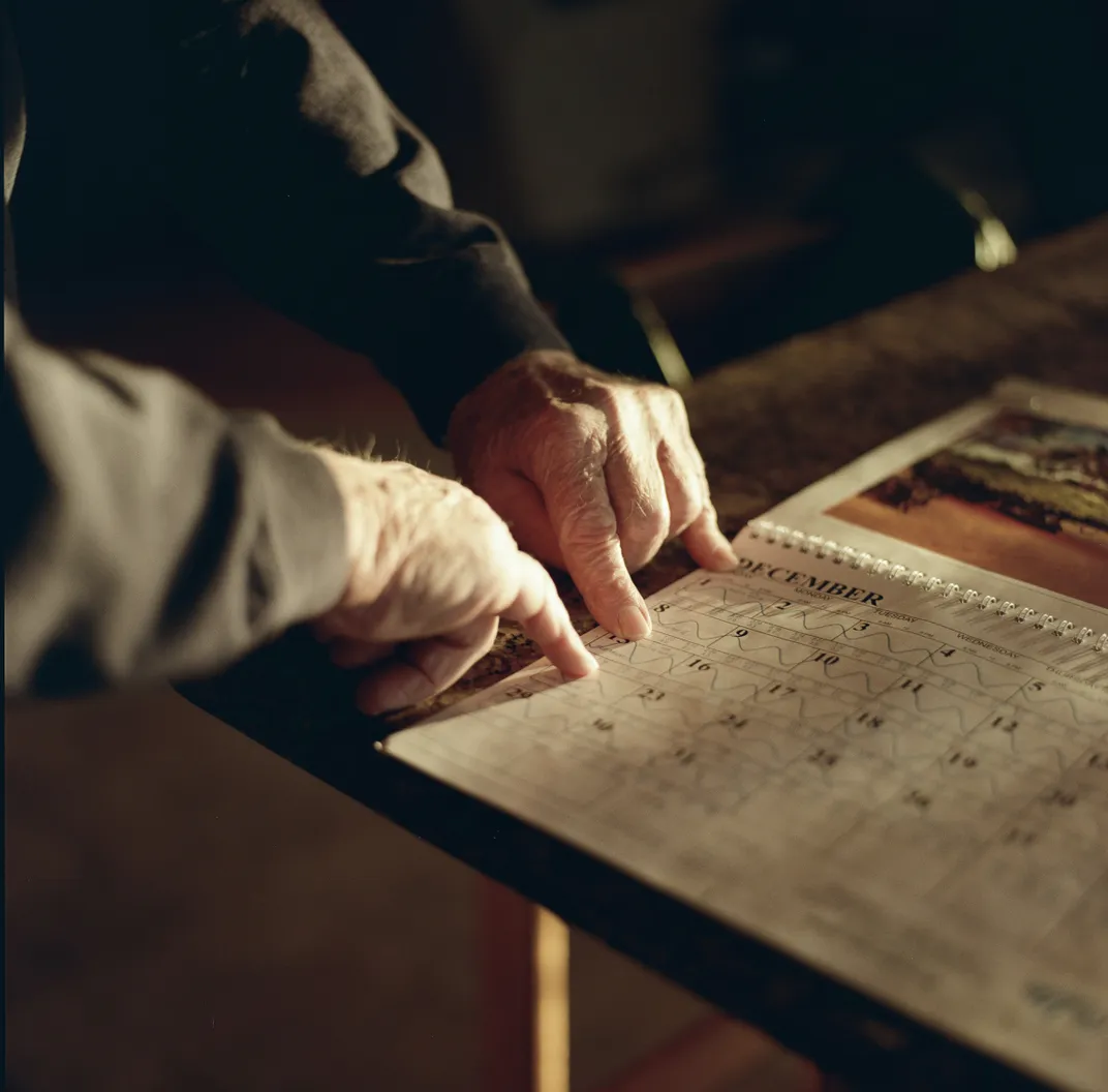 Mike shows me how he tracks the tides on the calendars at his home in Broad Channel. For residents, understanding the rhythms of water is essential: even small changes in rainfall or tide can flood streets and homes. This moment captures the quiet expertise and daily vigilance that shapes life on the island, reflecting how knowledge and routine allow the community to coexist with a constantly changing environment.