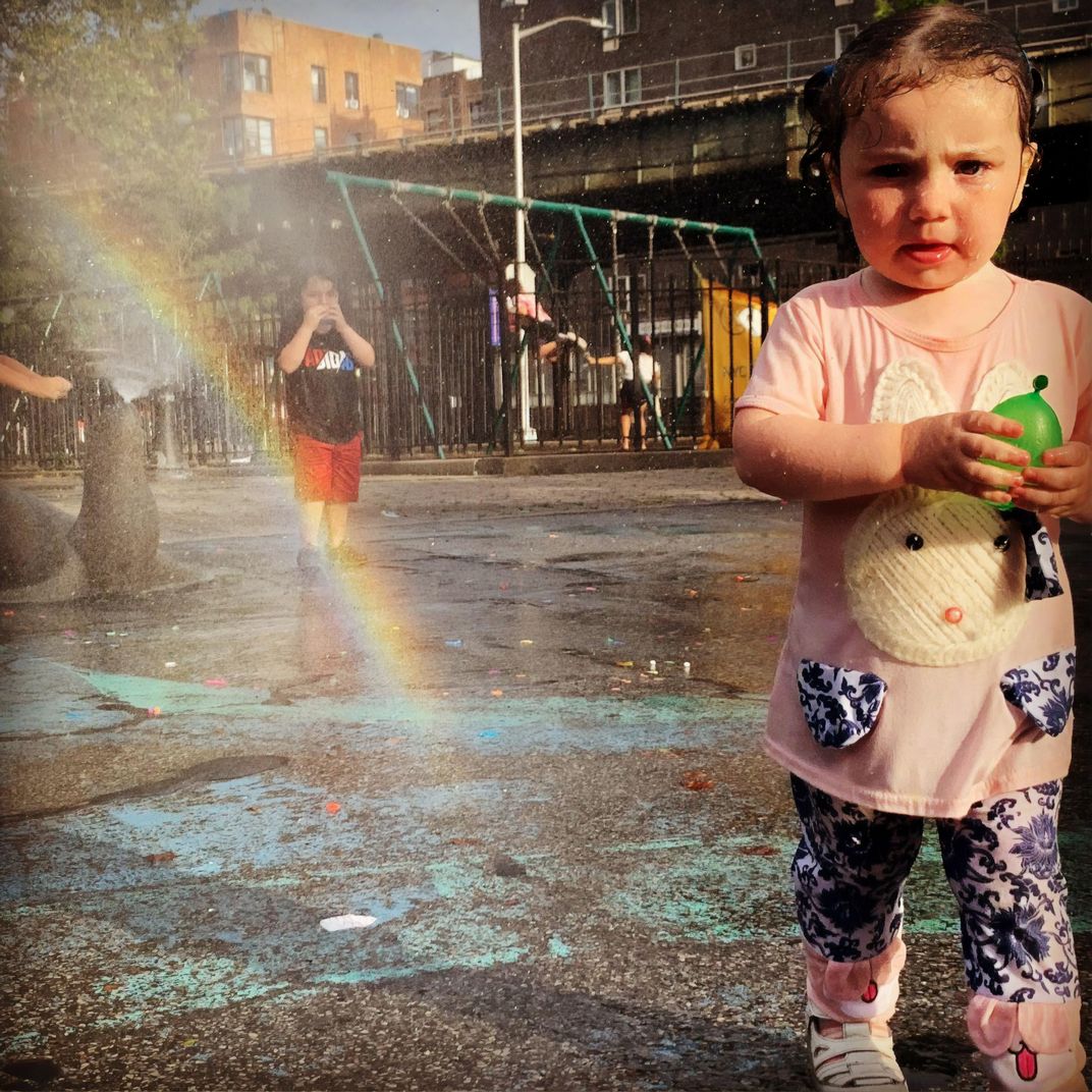 There was a newer cleaner park built 3 blocks away. This park is closer to our building and usually empty these days. The sprinklers were on but the other kids weren't allowed to get wet. My kids were soaking and having the best time of all.