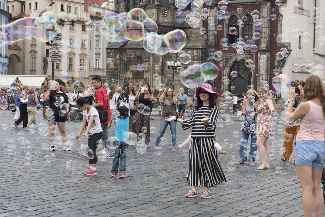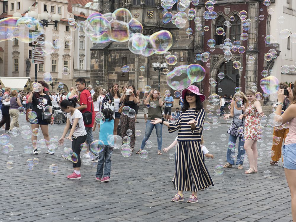 Bubbles in old town square, Prague