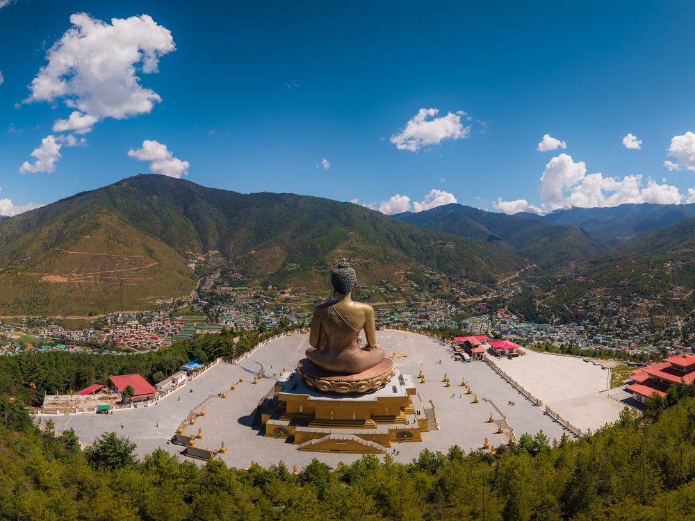 This 21-photo panorama captures the Buddha Dordenma overlooking Thimphu and the surrounding mountains. From the hilltop, the capital stretches across the valley in every direction, a sweeping view that shows how Bhutan’s landscape, culture, and spirituality meet in one place.