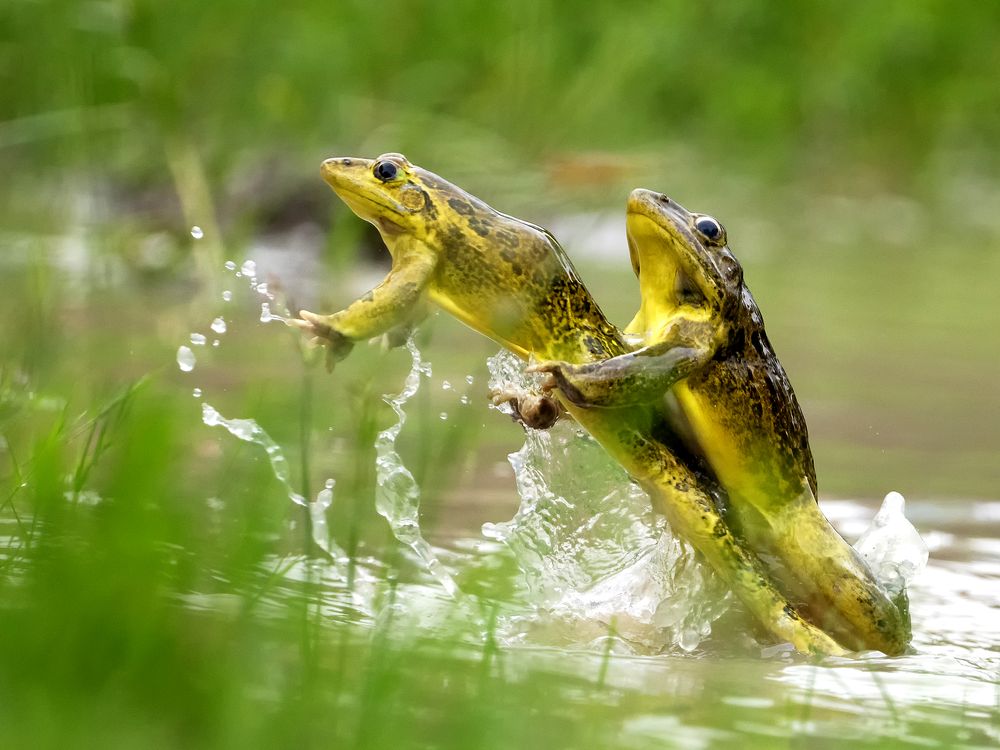 Photographing animal mating is a matter of luck.But it's more difficult to photograph bullfrog mating.Because, when the clouds of the first year and the rain come, they give mating calls and are attracted to each other.But, no one can say in advance where or when this will happen.