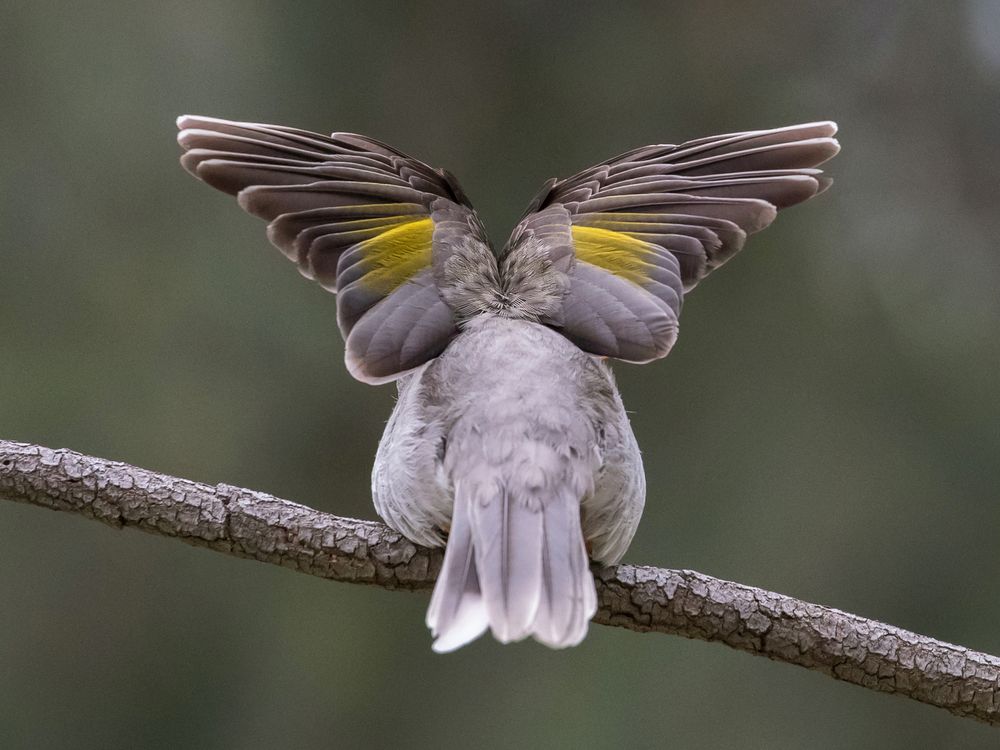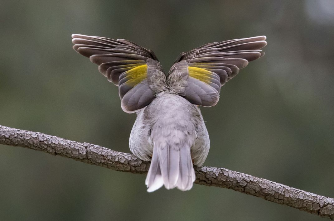 Noisy miner extending its wings during a preening session. It definitely reminded me of the wings of a butterfly