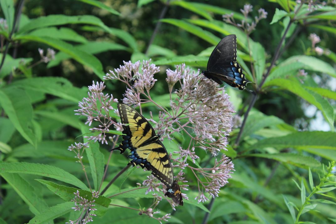 Butterfly on a bush, unbothered by the missing piece of wing.