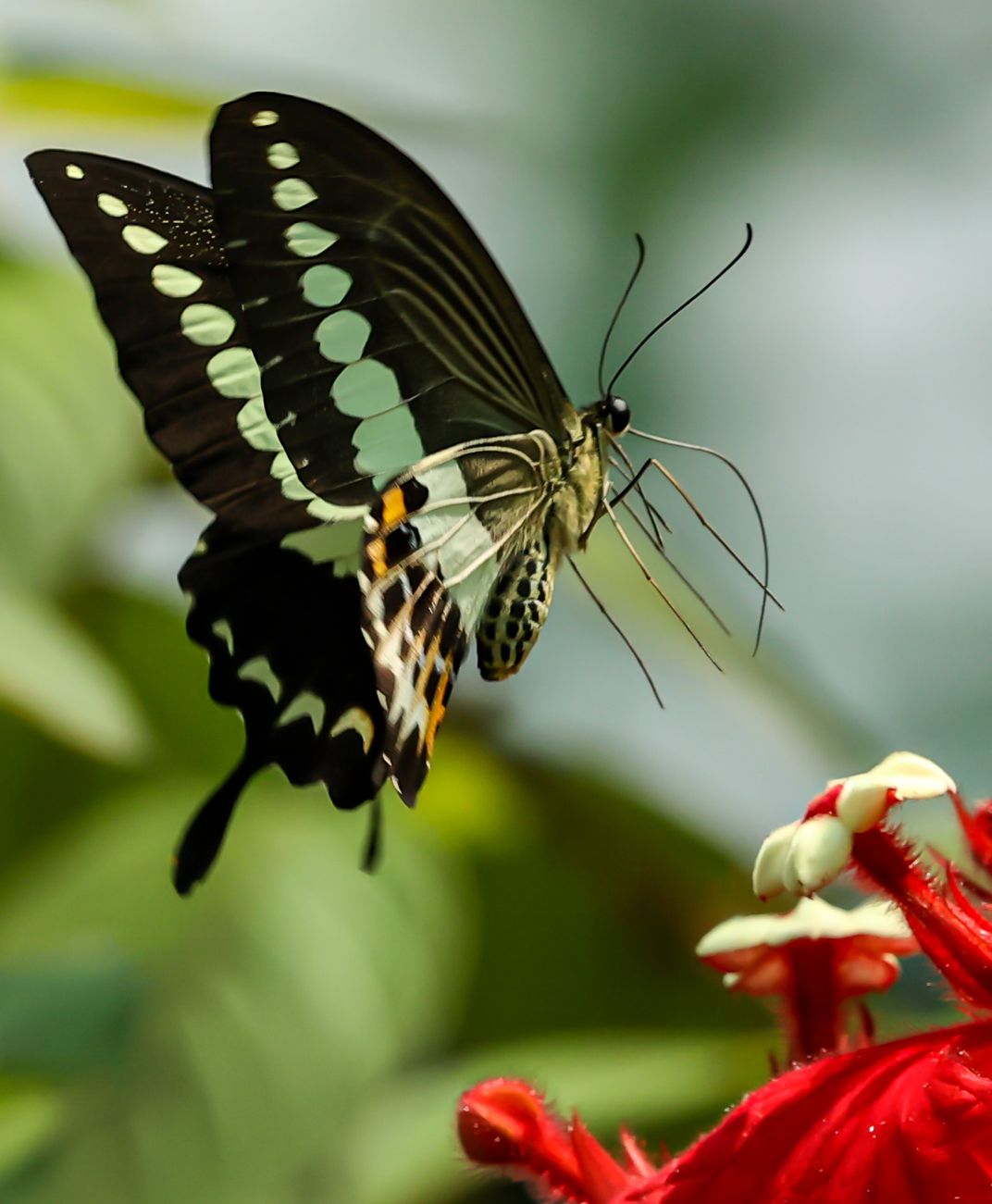 Capturing contrast of natural colors and different profiles of butterflies in flight.